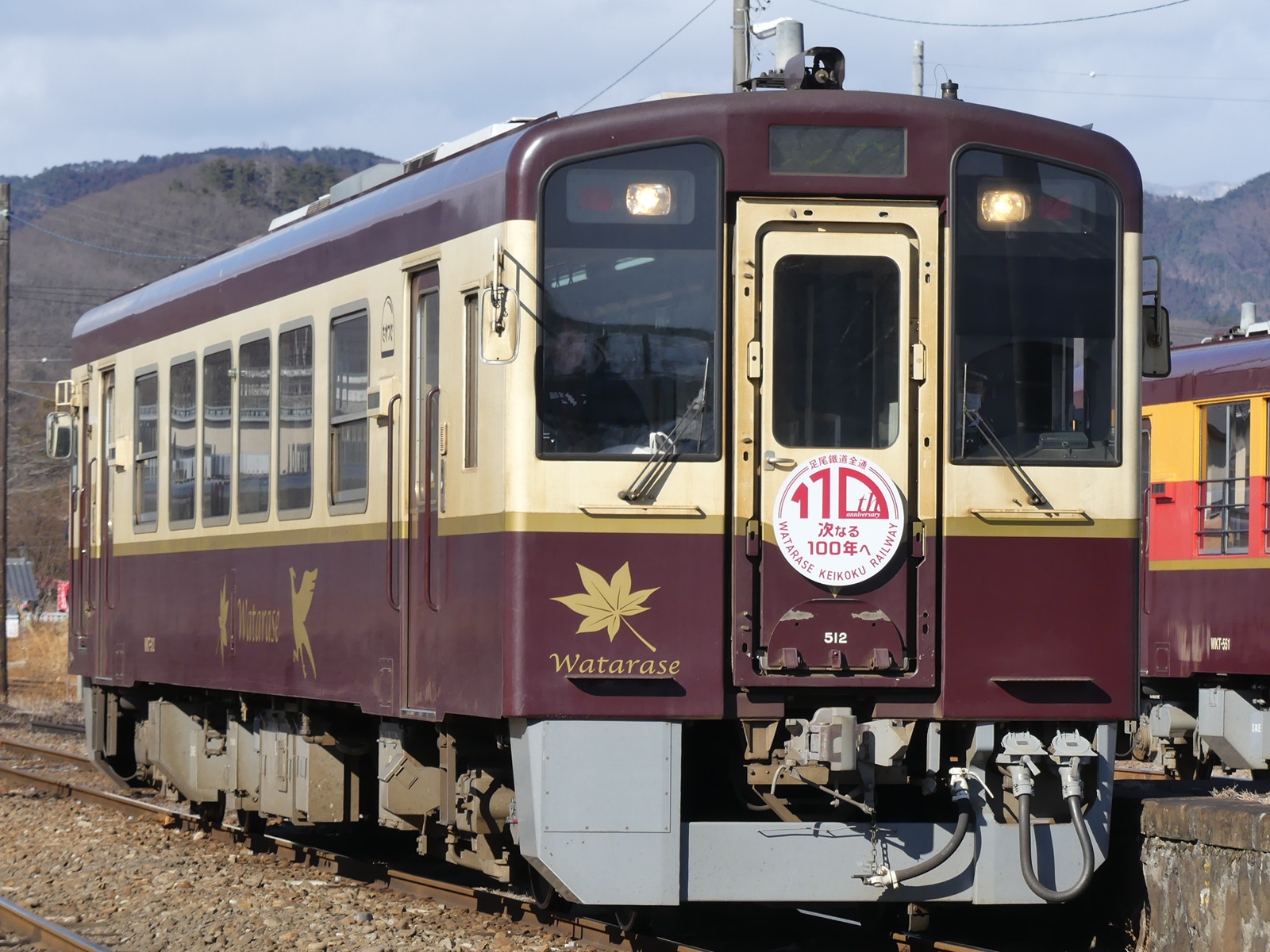 2016年に増備されたWKT-512号車。内装はセミクロスシートで511号車と同一だが、外装は他の車両に合わせられている。 2025,02,22 大間々 |