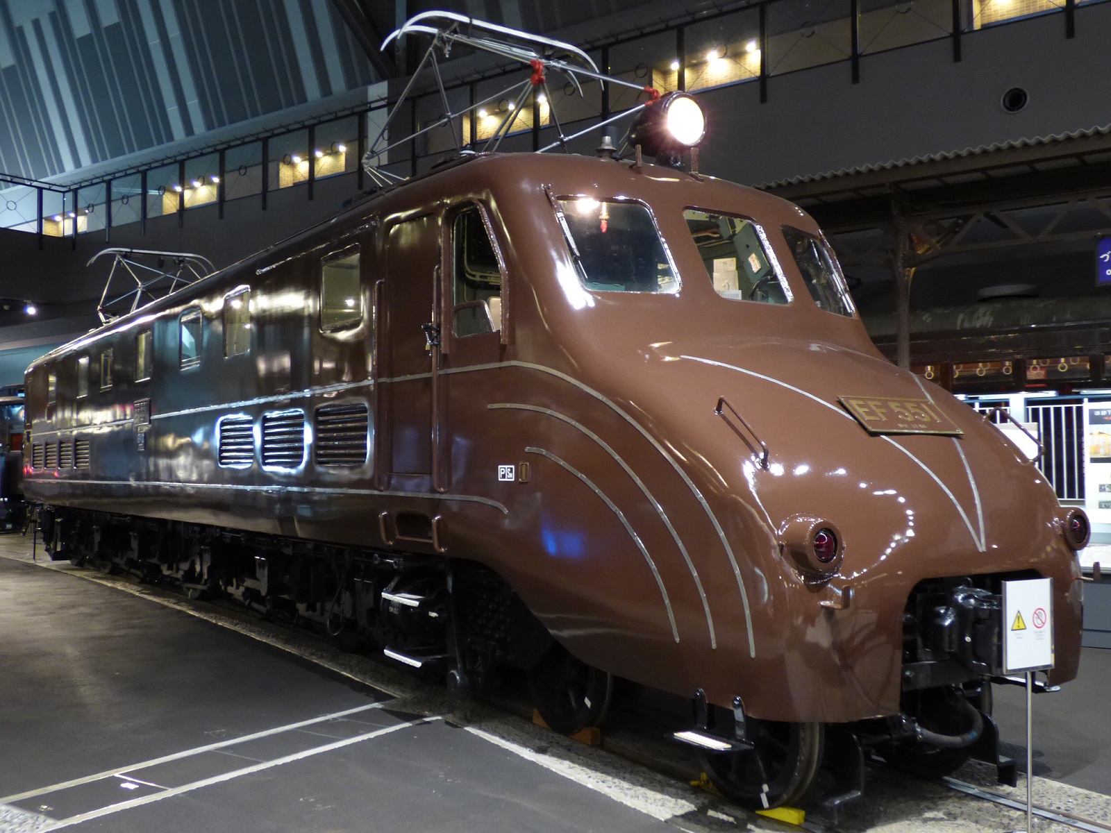 EF55形は1936年に製造された旅客用の直流電気機関車である。既に旅客用電気機関車としてEF53形が製造されていたが、本系列は当時の世界的な流線形ブームの流れを受け、アメリカはペンシルバニア鉄道の流線形機関車GG1形を参考にした流線形の機関車として開発されている。開発当初は両側とも流線形の構造とする計画もあったが、客車との連結時に空間が生じ、それにより発生しうる過流抵抗に懸念が生じたこと、ヨーロッパで見られるような客車端部まで流線形とする見込みもあったことから、片側のみ流線形の構造となり、反対側は切妻状の簡易的な構造となっている。切妻側の前面は当初営業運転が考慮されず、当初は構内での入換用途でのみ活用することを想定し、最低限の設備しか有していないのみならず、当初は灯具類を有していないという有様で、実質的に片運転台構造であった。台車についても、流線形の1エンド側は先輪が2軸であるのに対し切妻状の2エンド側は車長を抑えるため先輪1軸となっており、この結果2-C-C-1という特異な車軸配置を有した。流線形を採用した理由の一つとして高速走行時の空気抵抗の低減が挙げられ、これを具現化するために当時発展途上であった電気溶接を多用して平滑な車体とした。流線形側は先輪を覆うようにカバーが取り付けられた他、連結器部分にはカバーも取り付けられていた。また、前述のペンシルバニア鉄道GG1形を模したステンレス製の飾り帯が配される等、それまでの機関車とは一線を画した。性能面はEF53形に準拠していたが、歯車比がより高速寄りになっている。EF55形は同年に3両が竣工して沼津機関区に配置され、東海道本線東京口の特急列車を中心に優等列車の先頭に立つようになり、正に戦前期における花形車両といって過言ではなかった。なお、特急運用のみならず他の列車にも充当された。なお、製造当時は特徴的な外観から「カバ」「ドタ靴」といった愛称がつけられていた。後年、後位側運転台も本線走行可能なよう整備される等の後天的な改造がなされたが、基本的には転車台で方向転換のうえ流線形の前頭部を先頭にして走ることが殆どであった。花形であった期間は短く、戦争の進展により優等列車の縮小・廃止が進んだことで他の機関車に伍して運用が続けられた。なお、1号機は機銃掃射を受けており、その跡が残された。戦後しばらくの期間は東海道本線で運用され、戦後に復活した特急「へいわ」の先頭に立つなどの活躍もあったが、1952年には高崎第二機関区に転じ、高崎線の旅客列車を中心に運用されることになった。しかし、ほぼ流線形、片運転台構造という特殊な構造が災いし1960年代には全機が休車となり、1962年、1964年に各1両が廃車解体され、1号機のみが除籍されながらも残された。この1号機は国分寺市に存在した中央鉄道学園の教材用となったが、後に中央鉄道学園から返還され高崎第二機関区内で留置され続けた。この間、1978年には準鉄道記念物に指定されている。1985年には再度走行可能な状態に整備されて展示され、これが人気を博したことから1986年には本格的な動態復元がなされて車籍復帰し、翌年の国鉄分割民営化に際してはJR東日本に継承された。動態復元後は「ムーミン」という愛称もつけられ、SLと双璧をなすイベント用の主力機として上越線・高崎線を中心に各地で運用された。なお、1992年にはATS-Pも追設されている。2000年代中期までイベント列車に用いられたが2007年に故障で運用を離脱。修理部品の調達等が困難となったこともあり、2009年1月に引退することになり、2008年にはそれに向けて再度整備がなされ一度本線復帰した。引退後は高崎車両センターに車籍を有したまま保管されていたが、2015年以降は鉄道博物館で静態保存(併せて車籍抹消)されることになり、現在に至っている。SLを含め流線形の形状を有していた機関車としては唯一の生き残りで、その点でも貴重な存在と言える。