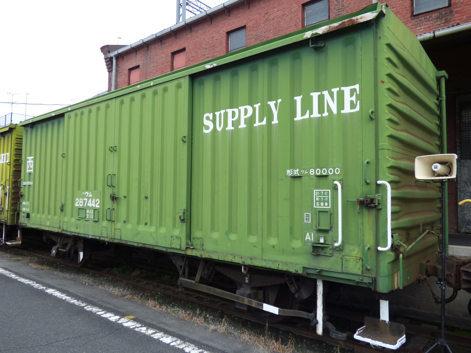 JR貨物に引き継がれたワム80000形の中でも、広島車両所で配給車として用いられた車両はモスグリーン一色に塗装され、「SUPPLY LINE」と表記されるという、他のワム80000形には見られない独自の塗装となっていた。既に本線を離れて久しいが、一部が広島車両所に姿を留めていた。