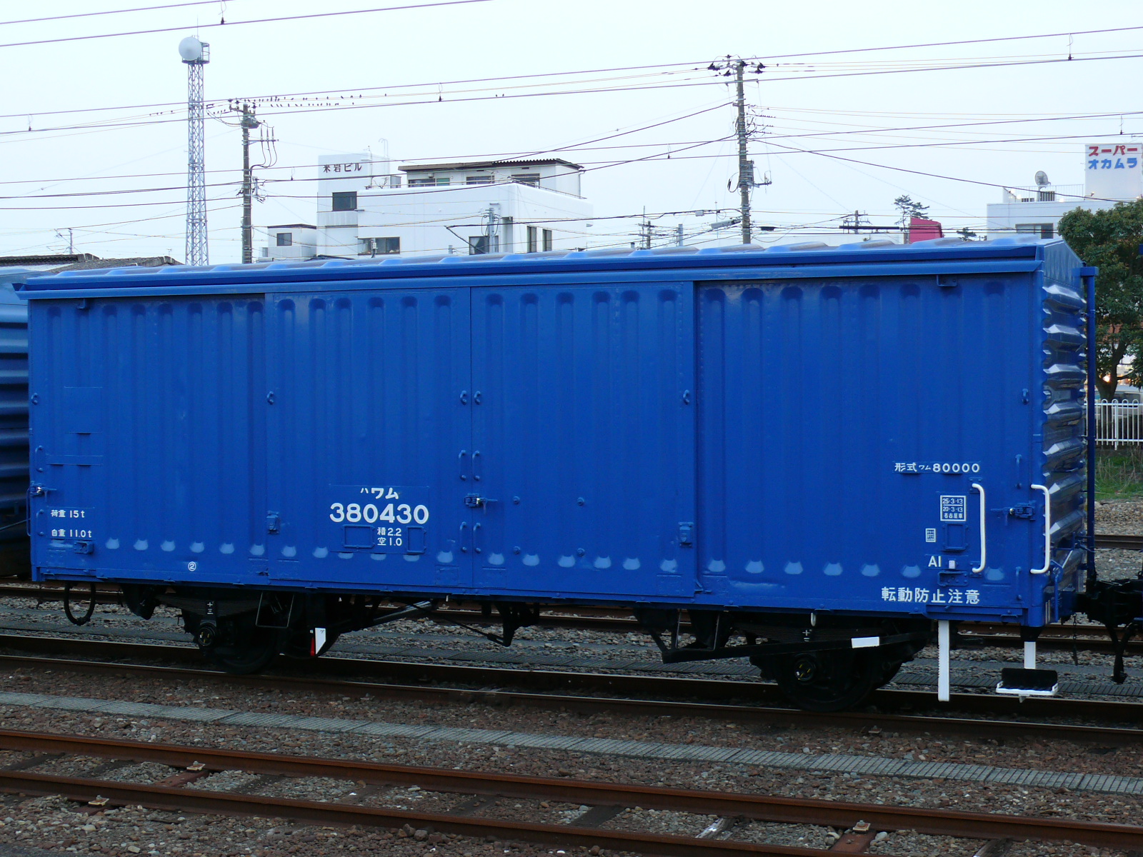 JR貨物に引き継がれたワム80000形の一部は、保守の省力化や信頼性向上を目的に台車の軸受けがコロ軸受けに改造されている。この改造が施された車両はワム380000番台に改番されており、1990年から1992年にかけて500両が改造された。コロ軸受け台車の場合既存車に比べて入換時等に転動を起こしやすいこともあり、未改造車との識別とイメージアップも兼ねて、外装がそれまでのとび色2号から変わり、JR貨物のコーポレートカラーである貨物ブルーとなった他、「転動防止注意」の表記が追加された。また、このグループが2012年の運用終了まで用いられていた。