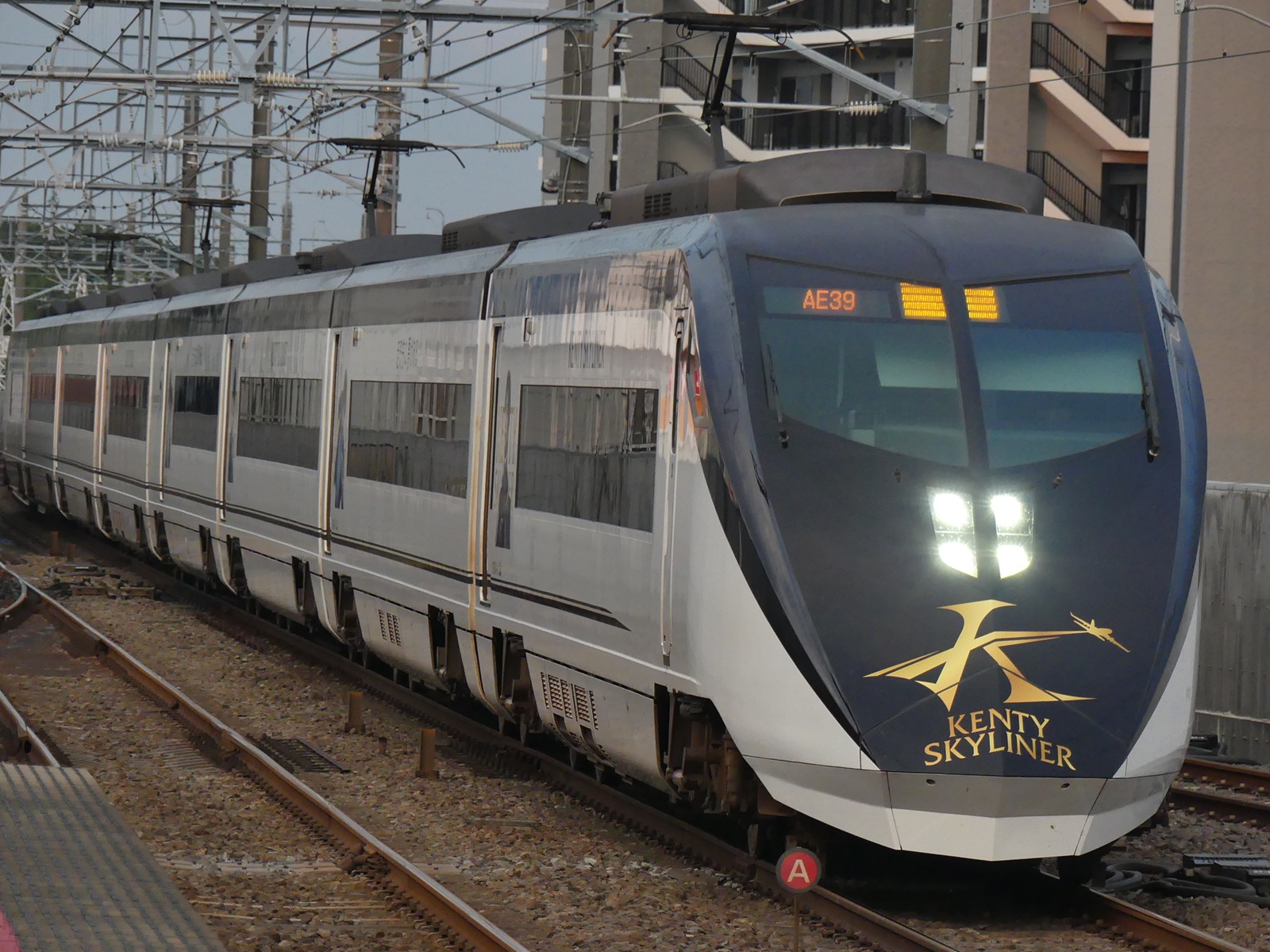 「KENTY SKYLINER」という特別ラッピングが施されているAE形。スカイライナーのイメージキャラクターを務めるsexy zoneの中島健人氏(京成王子)をモチーフにした装飾が内外装とも施されている他、スカイライナーでは中島健人氏の特別放送も流れる。「KENTY SKYLINER」のラッピングは2021年から開始されており、周期的にラッピングのリニューアル及び充当編成の変更が行われている。