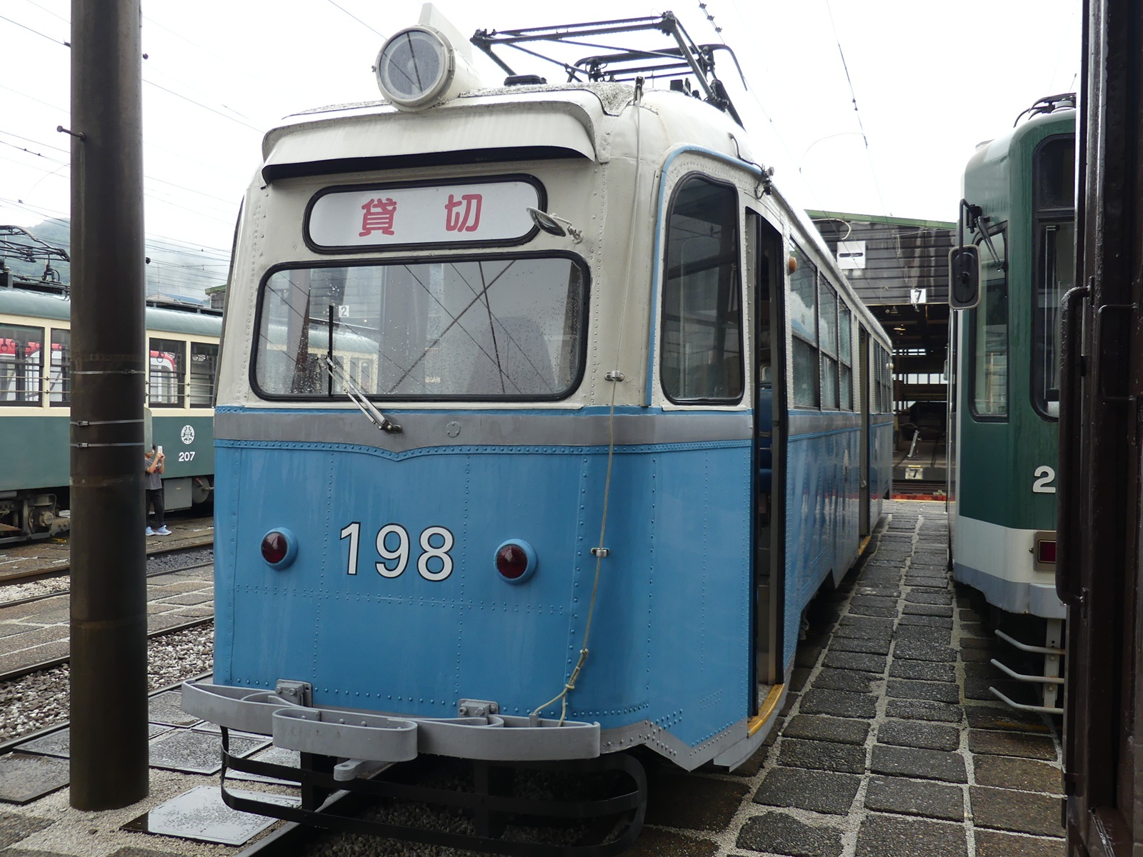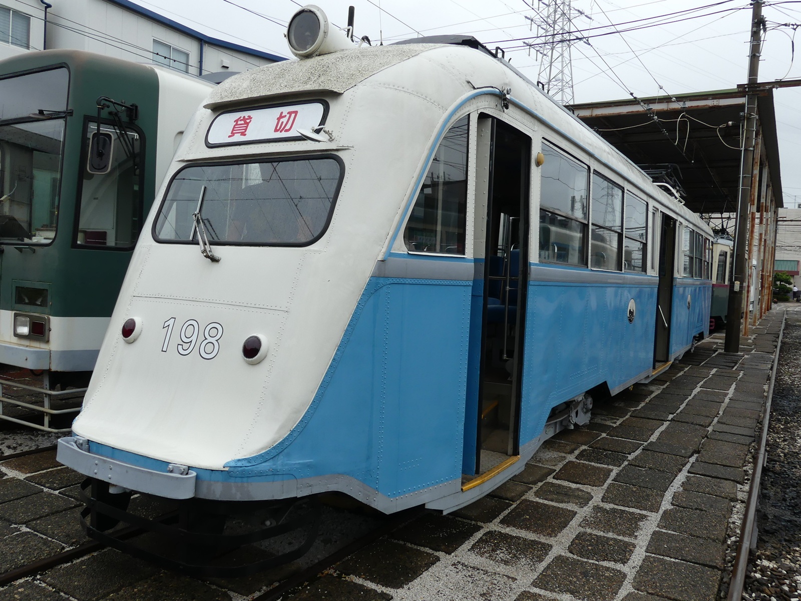 土佐電気鉄道では1989年に路線開業85周年を迎えたことを機に、更なる集客を図るため「世界の電車が走る街」というスローガンのもと、海外で使用されていた路面電車車両を譲受し、改造のうえで自社線で営業に供することが計画された。この計画により複数の国から中古の路面電車が譲渡されているが、本形式もそれにより導入されたものである。本車はノルウェーのオスロ市電で使用されていたB形と称される車両を出自としており、1939年に製造されたものである。全長は16m級で、この当時としては世界的に珍しく外板がアルミ製となっており、強度を高めるためにリベットにより接合されている。オスロ市電はループ線構造となっていたため、側扉は片側にしかなく片運転台構造となっているが、後部(運転台のない)側については特に鋭い流線形となっており、その特徴的な姿から現地では「金魚」という愛称がつけられていた。オスロでは1985年に運用を退き、このうち事業用として残っていた198号車が1991年に日本に輸入された。オスロ時代の車両番号がそのまま土佐電気鉄道での形式となっている。土佐電気鉄道での使用に際しては、軌間に加えて車両限界が異なっていたことから、鋼体を切り詰めて車体幅を200mm狭め2300oとする非常に大掛かりな改造が施されている。また、後部側についても運転台が新設され両運転台構造に改められ、灯具配置は前後とも上部に前照灯、窓下に尾灯2灯がそれぞれ配されている。前述のとおり元々片側には側扉は配置されていなかったが、配置されていなかった側にも既存のものと同様の扉が新設されている。台車はオスロ時代のものを軌間変更してそのまま用いている。車内は元々2+2人掛けの固定クロスシートとなっていたが、前述のとおり車幅を狭めたことから、固定クロスシートを維持しつつも2+1人掛けに改められている。天井には世界地図及びオーロラが描かれ、通常の車内照明の他に天井を照査するスポットライトも新設されている。中間扉付近はデッキのように区分けされており、この部分には吊り革も備えられている。その他、発車合図となる電鈴や、車内案内表示器、運賃箱等運行に必要な機器類が追設されている。なお、オスロ時代はクリーム色と水色のツートンカラーとなっていたが、土佐電気鉄道では紺色を基調にカラフルな水玉模様が配された独自塗装に改められている。本車は1992年5月から土佐電気鉄道で営業運転を開始した。高知駅前〜桟橋通五丁目間を中心に貸切、イベント用としても運用されていたが、2009年のICカード導入時には対応せず定期運用を離脱している。2012年にはICカードにも対応し、同年11月以降土日限定ながら高知駅〜桟橋通五丁目・枡形間の定期運用が復活したが、冷房装置を搭載せずワンマン運転に対応していないこともあり、2016年2月の高知駅〜枡形間直行便の日中休止に際して再度定期運用を離脱した。以降はイベント専用車という位置づけであり、特別運行や貸切用途で時折本線走行する程度となっている。なお、とさでん交通への移管後の2016年に、オスロ時代と同じ塗装に復元され、現在に至っている。