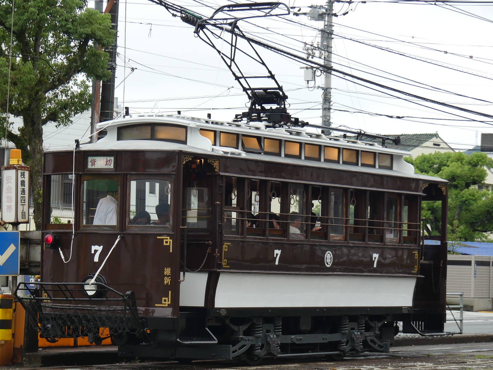 1984年に路線開業80周年を迎えた土佐電気鉄道が、その記念事業の一貫として製造した車両が7形であり、「維新号」という愛称を有する。ほぼ同時期に登場した広島電鉄の100形と同じく、戦前の主力車両の車体を模した4輪単車であり、車体は全長8m級でオープンデッキ構造となっている。屋根はダブルルーフとなり、ダミーながら屋根上にポールを備えている(集電装置自体はビューゲルが取り付けられている)他、前面には救助網も備えられている。車体は鋼製を基調としているが、窓枠、鎧戸、仕切り扉など、一部に難燃木材が使用されている。なお、天井及び側窓から採光窓にかけての壁面は木目調のアルミデコラで、木板を組み合わせたような仕上がりとなっていることから木造に近い質感であり、総じて黎明期の主力車両である初代7形の内外装が再現されている。走行機器類は廃車発生品があてがわれているが、これはかつて在籍していた300形(初代)のうち、長期間に渡り車庫内に留置されていた321号車のものである。元々300形(初代)は初代7形の発生品を流用していたため、走行機器は本来の7形のものを搭載した形になっている。車内はロングシートで、ニス塗りの窓枠、白熱灯を用いた車内照明、木製の鎧戸等により、重厚感のある内装となっている。デッキ部分と客室部分は両開きの木製扉によって仕切られており、この扉は自動開閉が可能となっている。オープンデッキ構造ゆえ、ワンマン運転には対応しておらず、本車運用時は車掌も乗務しツーマン運転となる。この7形は1984年12月から営業運転を開始した。当初は高知駅〜桟橋通五丁目を中心に限定運用が組まれていたが、車両の構造上ワンマン化は不可能で、かつデッキ部にICカードリーダーを設置する箇所がないことから、2009年のICカード導入時に通常運用からは外れ、現在はイベント時の特別運転や貸切用途での運転が主となっている。なお、集電装置は前述のとおり長らくビューゲルであったが、2000年代前半にZ型パンタグラフに換装されている。
