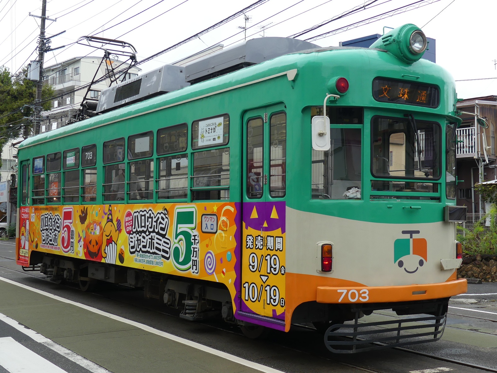700形は元々山口県下関市の山陽電気軌道で使用されていた車両を、1971年の路線廃止を機に譲受したものである。1958年にナニワ工機で製造された全長12m級の半鋼製車両であり、前後扉を採用している点は土佐電200形と同様であるが、こちらは扉が2枚折り戸となっている他、車体・台車とも軽量化が図られており、実際に土佐電200形と比較すると1t以上も自重が軽減されている。また山陽電気軌道時代より前面中央窓と側窓上部にはHゴムが、側面下段窓にはアルミサッシが採用される等、半鋼製車両ではあるが近代的な外観を特徴とした。700形は4両が製造されたうち、3両が土佐電気鉄道に譲渡されている。山陽時代にワンマン化改造を受けており、後年に集電装置もビューゲルからZパンタグラフへと換装されていたことから、特段大きな変化もなく導入されているが、それまで白熱灯であった室内灯が蛍光灯に換装されている。また、元の703号車が譲渡されなかったことから704号車が703号車に改番されており、全車とも通し番号とされた。尚、制御方式が直接制御方式であったことから譲渡当時行われていた安芸線(鉄道線)への乗り入れは行われず、あわせて連結運転にも対応していない。冷房化は600形が完全冷房化された1997年以降に行われており、比較的遅い冷房化となった。現在は更に行き先表示器のLED化等を経つつ3両とも現役であり、800形と共に主力車両の一翼として活躍を続けている。形態としては山陽時代から殆ど変っておらず、その面影を残す存在として貴重な車両であると言える。尚、土佐電気鉄道は2014年10月から高知県交通・土佐電ドリームサービスと合併して新会社「とさでん交通」となっており、同車も新会社の所属となっている。
