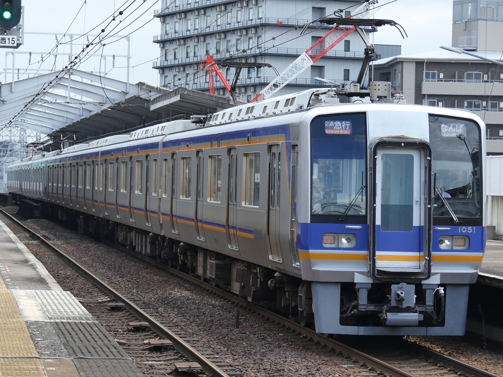 「インバウンド対応工事」と称される更新が施された1051F。同編成は2018年以降高野線に転属し、他編成の対応工事が完了し南海本線に集結した2020年以降も引き続き原型で高野線に在籍していたが、2024年に対応工事が施工されており、併せて南海本線に復帰している。