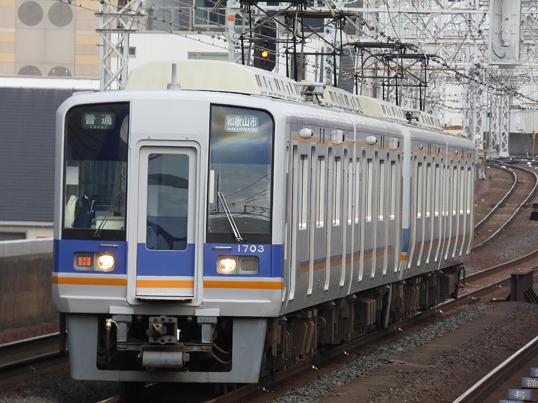 なんばパークスの全面ラッピングが施されていた1001F。初期に製造された6連3本、2連3本については車体幅が2744oと以降に製造される車両よりも細く、袖絞りも小さいのが特徴である。初期車は高野線への在籍が長かったが、現在はいずれも南海本線で運用されている。