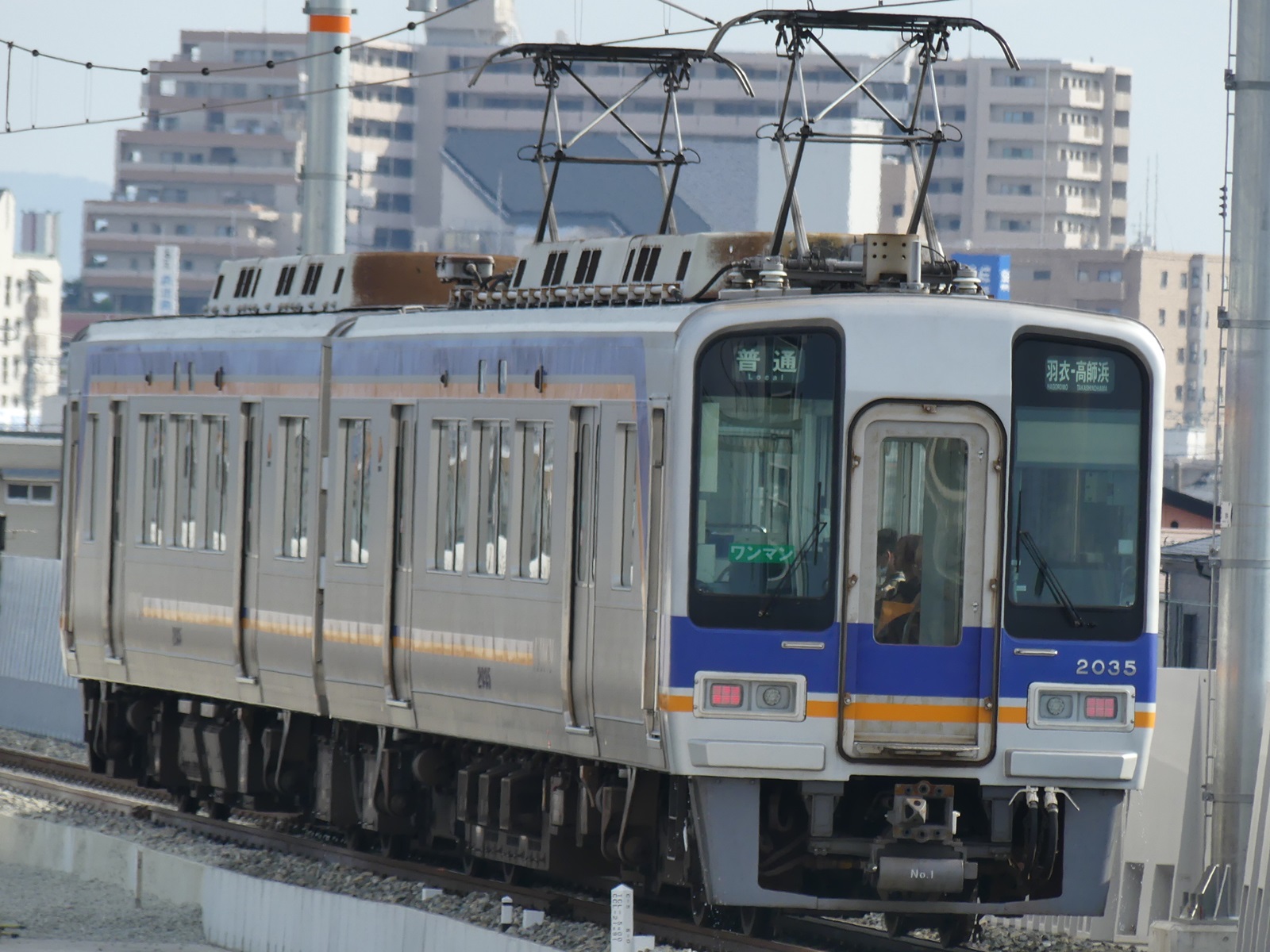 ワンマン化改造が施された2000系。2200系・2230系の置き換えを目的として、余剰気味となっていた2連の編成に対して施工されている。元々2000系は冗長性確保の観点から2連での単独運用は行われていなかったが、この転用により解禁となっている。2連5本にワンマン化が施工され、後述の「めでたいでんしゃ」となった1本を除き汐見橋線、高師浜線、多奈川線でそれぞれ充当されている。