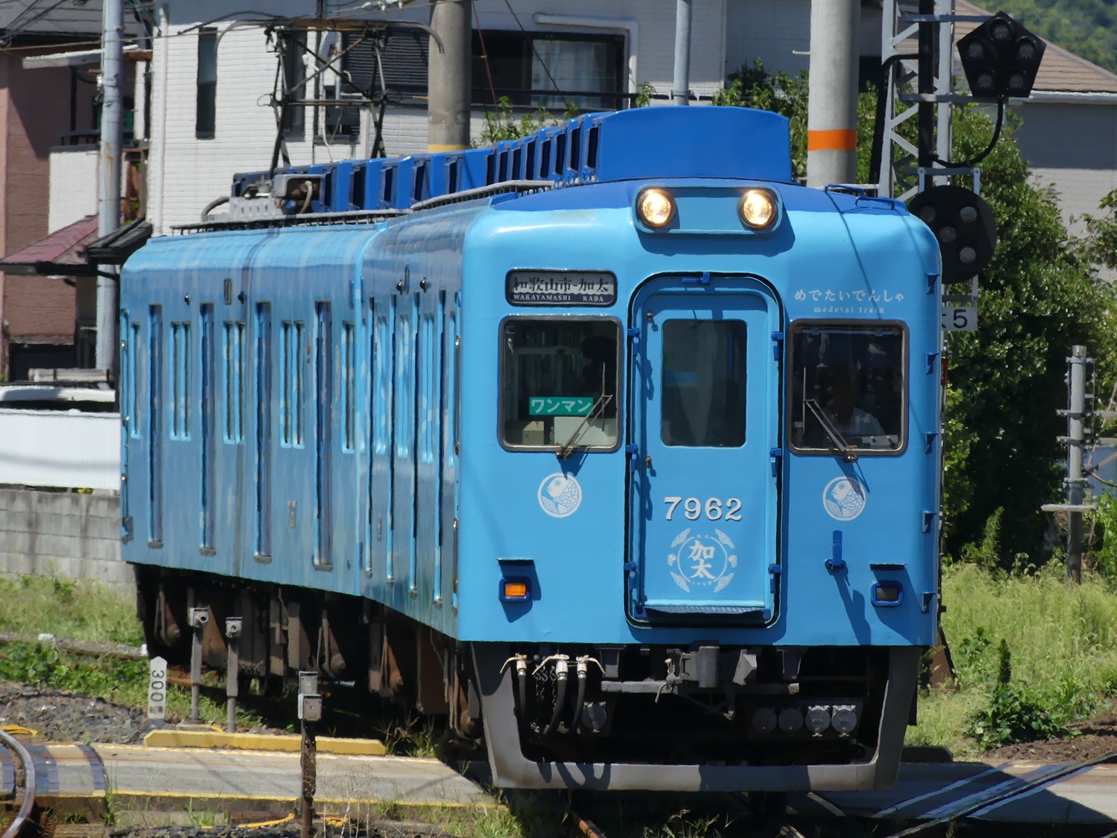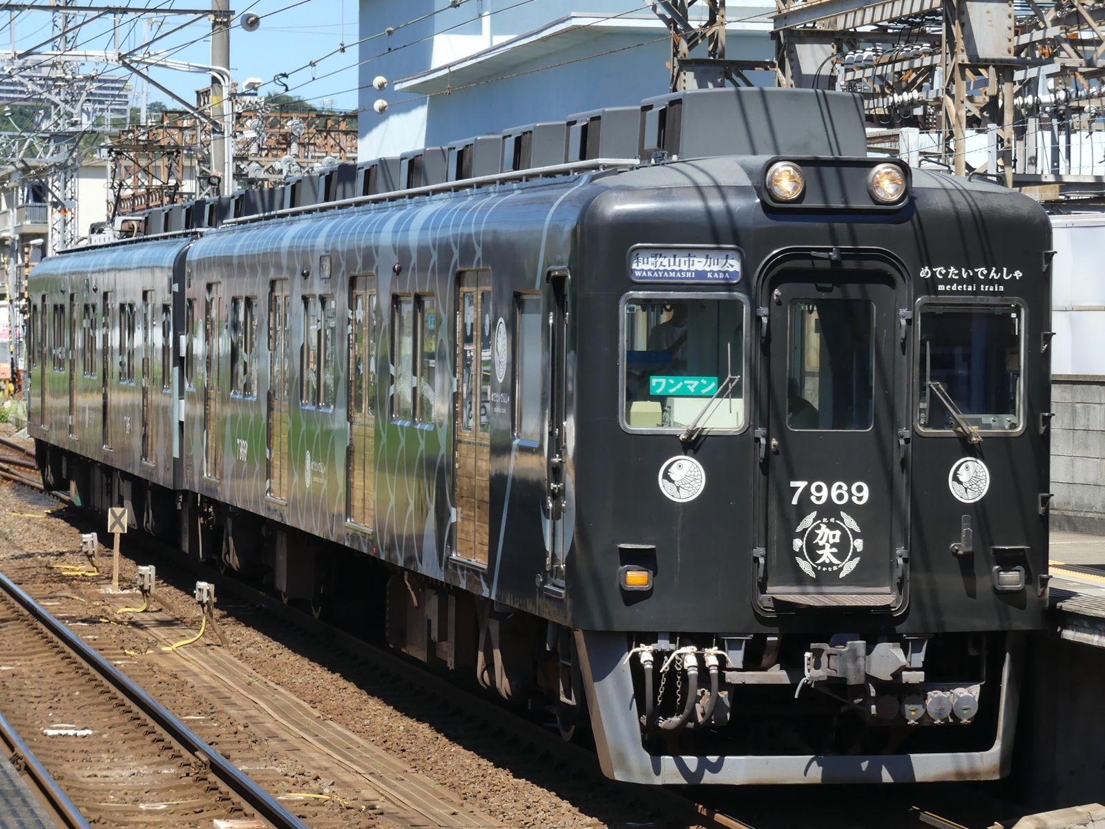 2012年に開業100周年を迎えた加太線では、沿線の観光協会と共同で同線の魅力発信、観光振興を目的に2014年11月から「加太さかな線プロジェクト」を立ち上げた。このプロジェクトの一環で、「乗るだけで、おめでたい気分になる電車。 ずっと乗っていたくなるような、愛でたくなる電車。」というコンセプトにより、沿線で採れる鯛等をモチーフにした「めでたいでんしゃ」が2016年から運行を開始した。最初に登場した編成(7187F)はピンクを基調とし、内外装とも鯛をイメージしたものに変更されており、クーラーキセの部分まで着色されている。この編成は後に「さち」という愛称がつけられることとなった。なお、加太線の観光振興という側面が強いため、「めでたいでんしゃ」に改装された編成はほぼ加太線専属運用となっており、特別なイベント等を除き他路線では用いられない。