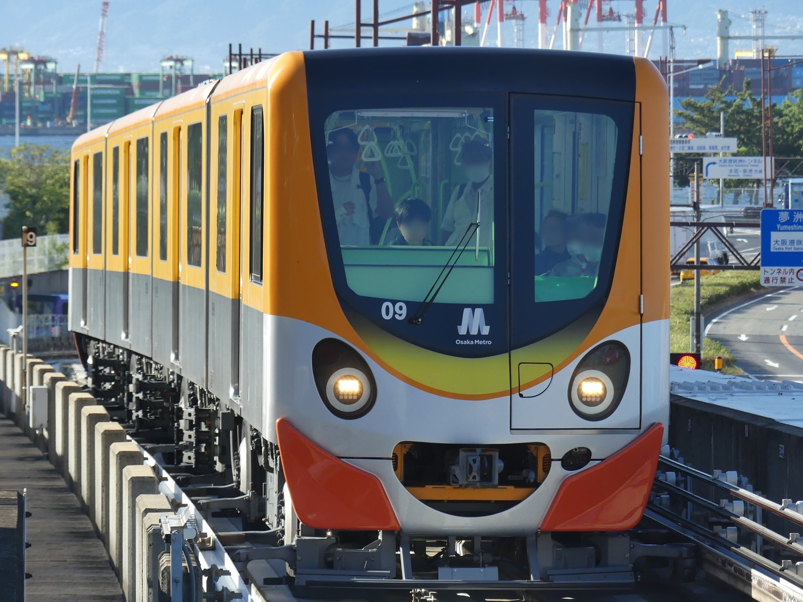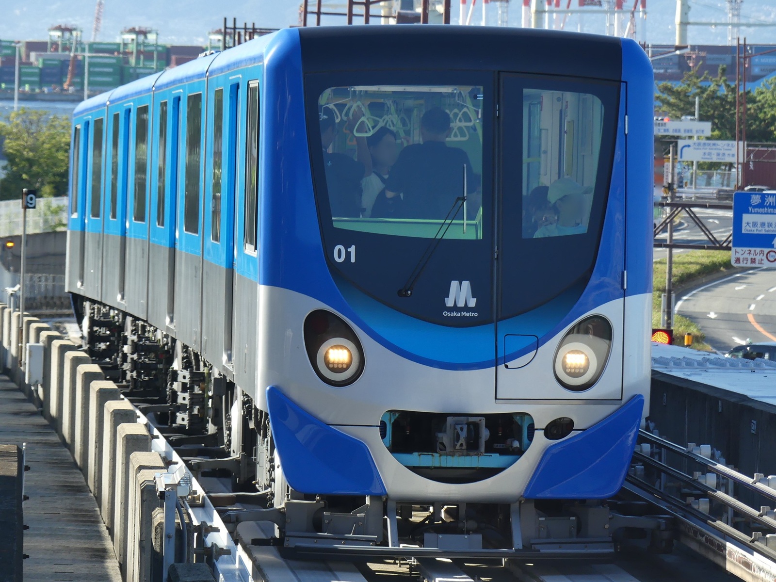 量産先行車として2015年に最初に落成した第1編成。量産車とは細部が異なっていたが、量産車登場に併せて一度新潟トランシスで量産化改造が施されている。この編成は「ブルーベリー」をモチーフとした青紫基調の外装となっている。なお、2018年4月の民営化に際し、正面につけられていたニュートラムのシンボルマークは新生「Osaka Metro」のシンボルマークに改められている。また、前照灯にハロゲンライトを採用していた編成については、2017年以降に順次LED化されている。また、近年は連結器回りも編成色に塗装されるようになっている。