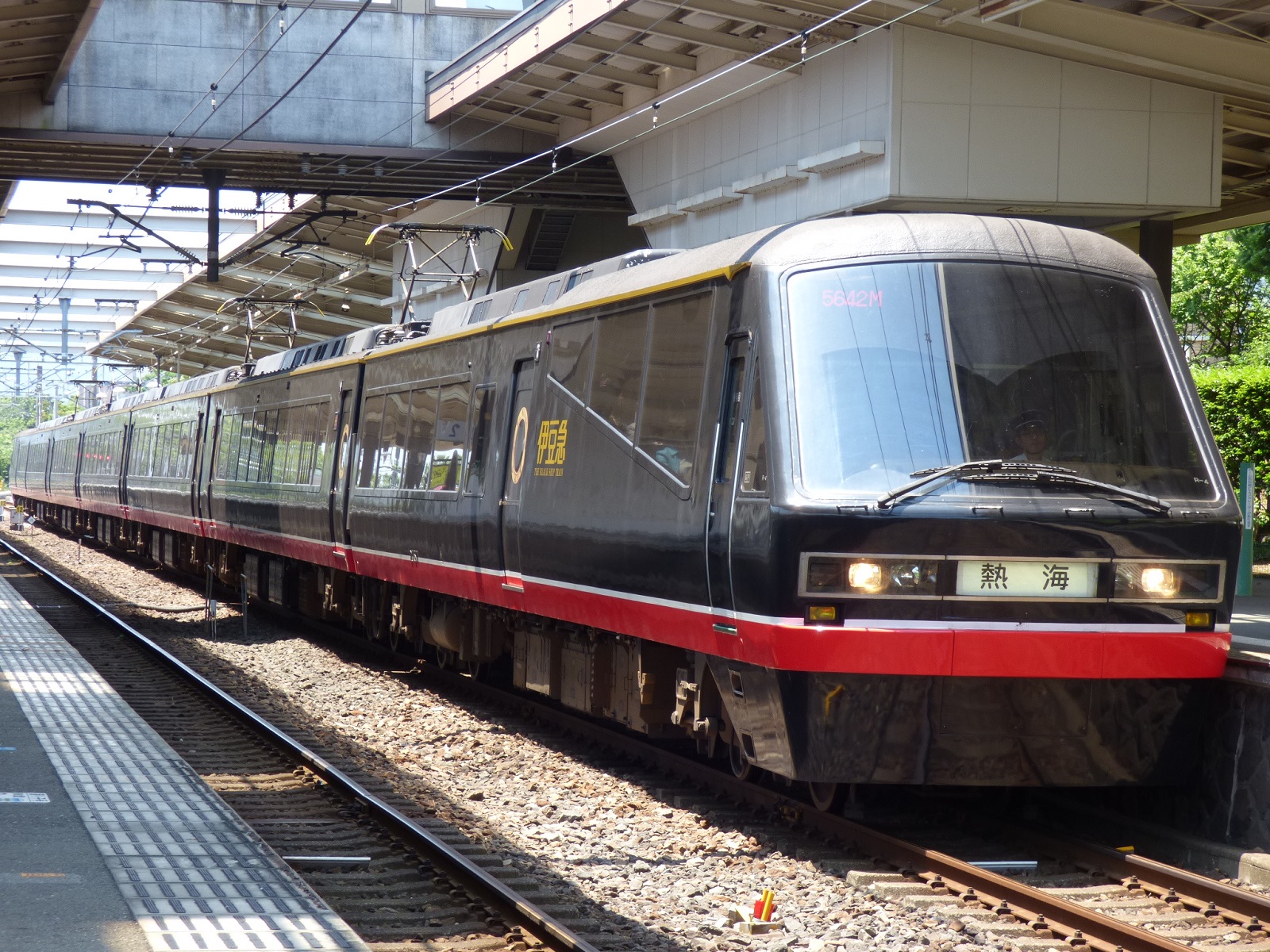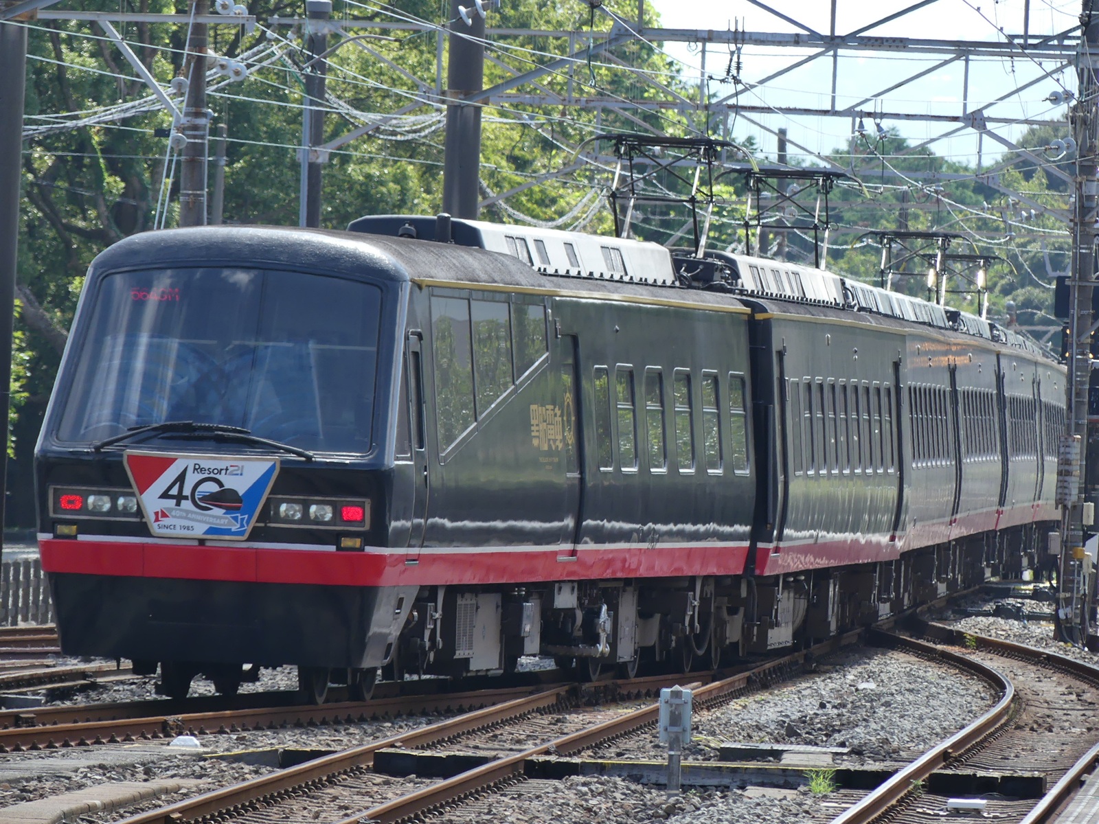 リゾート21の就航40周年を記念したヘッドマークがつけられたR4編成。登場時の塗装を模した大型のヘッドマークが搭載された。