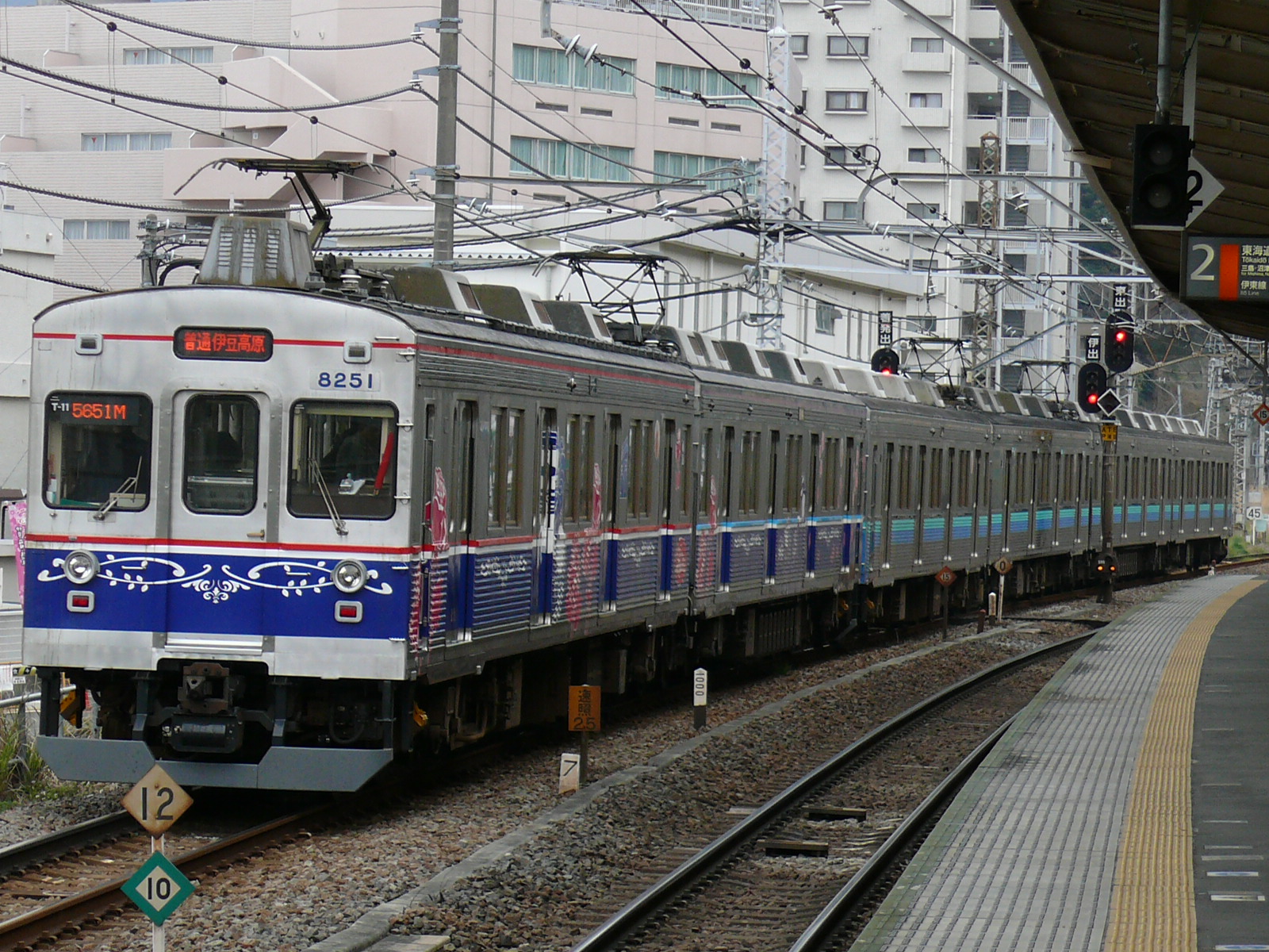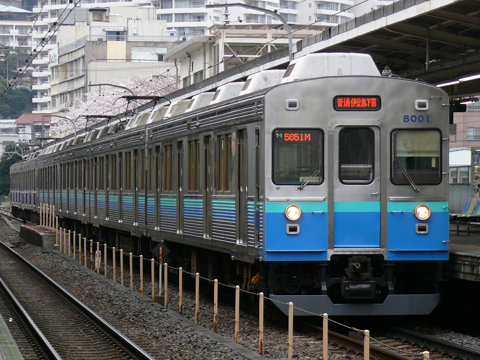 2両編成を組んでいた編成は既存の制御車の他中間電動車を制御車化した車両も連結されていた他、離線対策でパンタグラフが増設されており、追設されたパンタグラフはシングルアームパンタグラフとなっていた。また冷房能力を補うため、乗務員室上部に冷房装置が追設されている。なお、8000系のうち4連と2連各1本については、200系でもラッピングされていた「河津バガテル公園」の特別装飾がなされ、2代目「トランバガテル号」となった。3連化後もこの姿を留めていたが、2012年に契約解除となっており、以降は通常の外装に改められた。