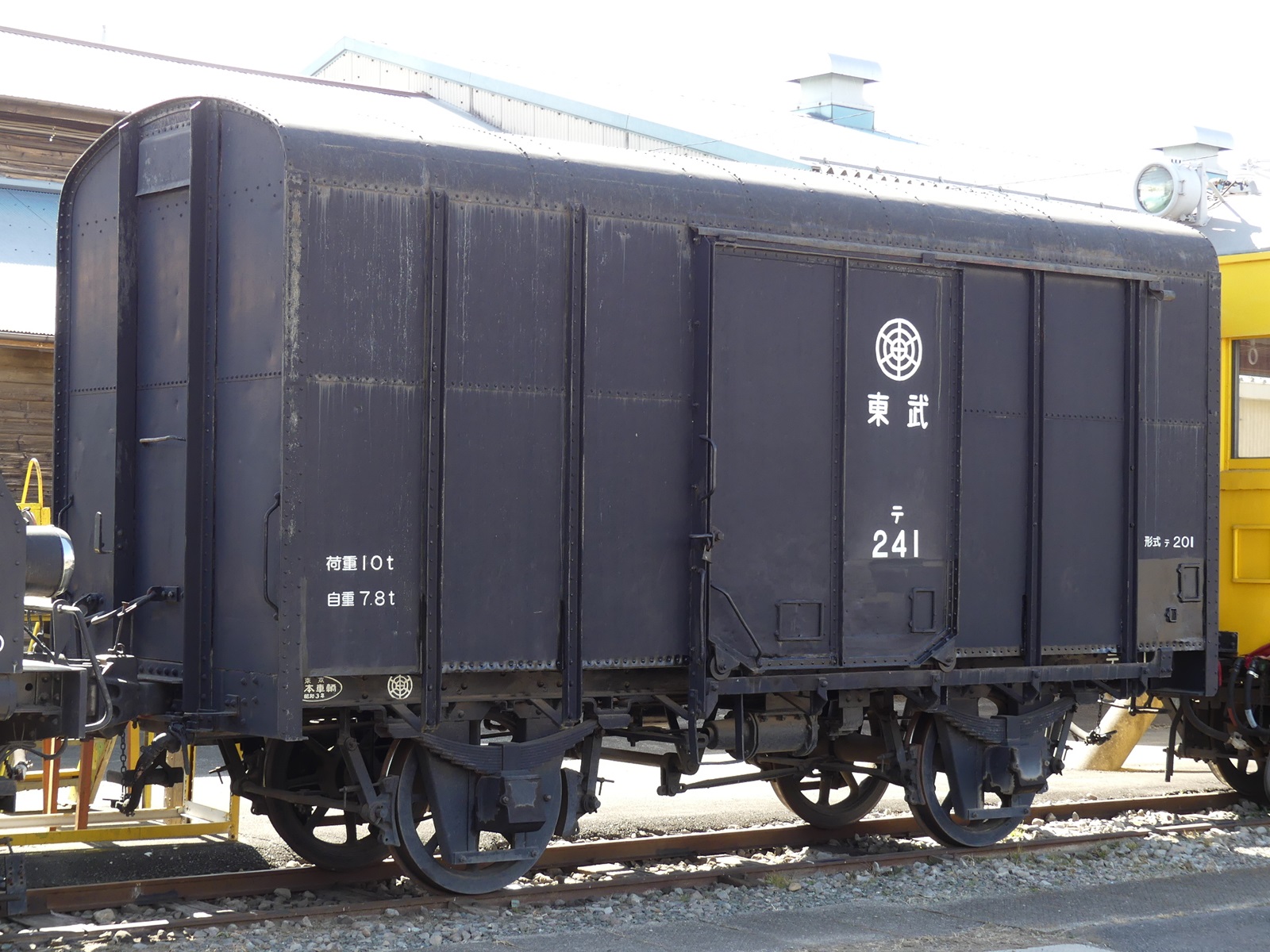 テ201形は1928年から製造された10t積みの鉄製有蓋車である。主に葛生駅周辺で産生される生石灰の輸送に用いられた貨車の一つで、既に同じ10t積みの鉄製有蓋車としてはテ121形等が既に在籍していたが、こちらは骨組みが外部に露出している点が特徴である。前述のとおり、葛生駅周辺の貨物駅で生石灰を積載し、主に業平橋駅に隣接していたセメント工場まで移送してセメント生成に寄与した。除籍後も一部が台車を外されて倉庫代用とされたり、台車も含めた完全な形態で車庫内で倉庫代用として活用されていた車両も存在した。このうち、長らく七光台検修区で倉庫代用として使用されてきたテ241号車が、東急デキ3021号と共に2009年に上毛電気鉄道に譲渡され、再整備のうえ大胡駅構内で保存されており、イベント時等にはデキ3021と連結して構内走行が披露されることもある。