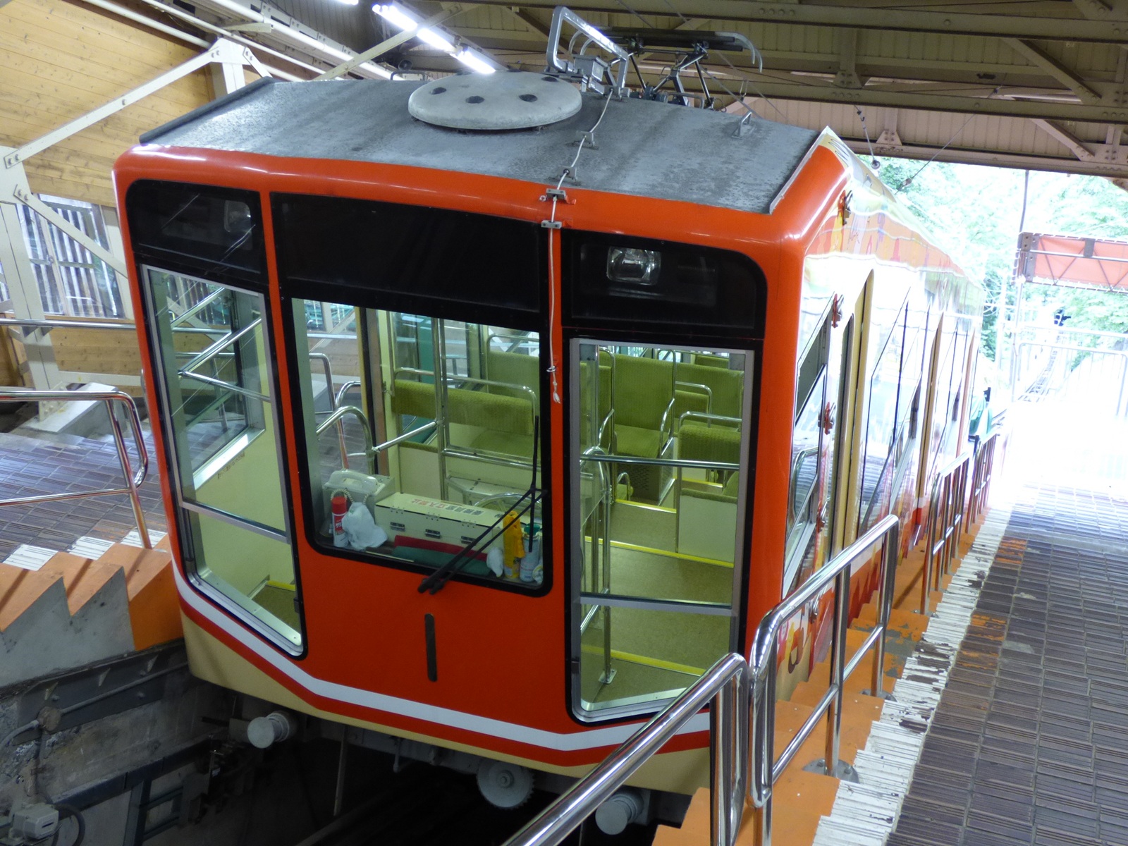現在の車両は立山観光鉄道時代末期の2003年に、先代車両の老朽化により投入された2代目であり、大阪車輌工業で製造された。形式は落成年に因んだものである。先代車両の末期と同じくクリームとオレンジのツートンカラーだが、先代とは配色が逆転し上部がオレンジ、下部がクリームとなっている。前面は3面折り妻状で、左右の窓が大きくとられており眺望性を重視したデザインとなっている。前照灯・尾灯は上下とも窓上に配されている。立山ケーブルカーの特徴として、基本的に麓側に大型の荷台を常時連結し、そこに乗務員室や灯具類も備えているという点があり、現在の車両もそれを踏襲している。車内はボックスシートで典型的なケーブルカーの内装となっている。つり革は各扉付近に2か所のみと少ないが、立ち客にも配慮し座席に隣接する形で掴み棒が備えられている。また、車内照明はカバーで覆われている。通常運行時、車掌は連結されている荷台側の乗務員室に乗務するが、荷台なしでの運転も可能であり、旅客車の麓側にもブレーキハンドルを備えている。本車は既に製造から20年以上経過しているが、アルペンルート富山側の足として活躍が続いている。